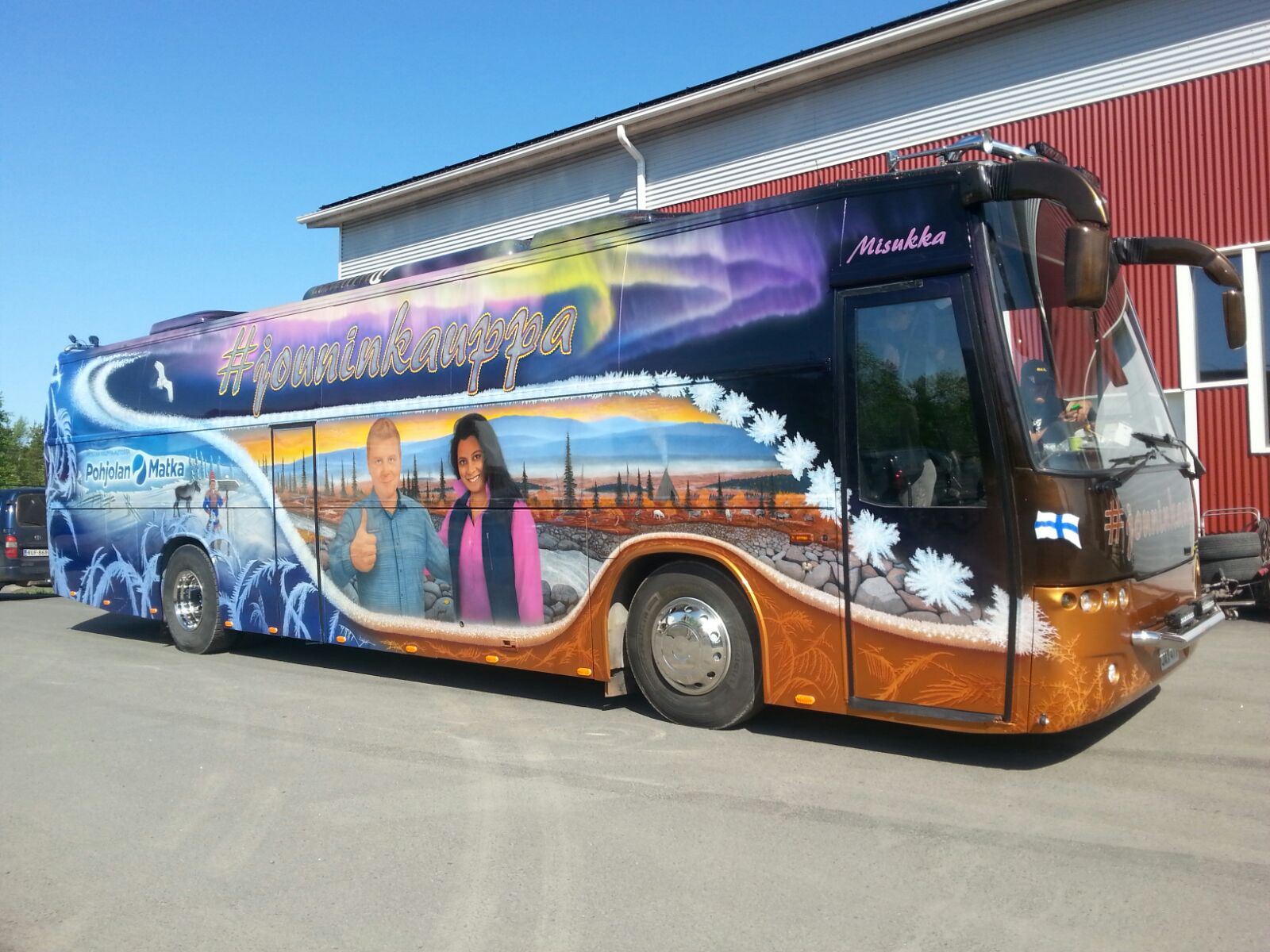 En halunnut perinteistä autoa vaan sellaisen mikä kääntää jokaisen pään kun vastaan tulee. Kauppias kertoo. Auto on Pohjolan Matkojen entinen bussi, jonka ovat Bad Boys Tuning ja Kimmo Takarautio rempanneet kuluneen puolen vuoden aikana. Auto on kokenut täydellisen muodon muutoksen ja sinne on laitettu mm. karaokevehkeet, kairan kovimmat poppikoneet ja koneessa on oma sähkövoimala joten sen ei tarvitse olla aina pistokkeessa pysähtyessään. Auton liikkeitä voi myös seurata reaaliajassa netistä. Myynnissä on lappilaisia tuotteita ja kaupan omia vaatteita.