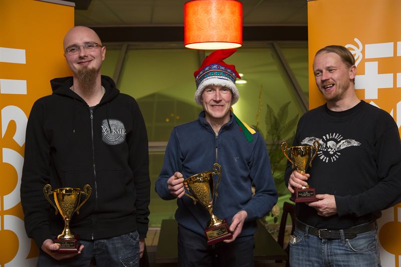 Palkinnot jaettiin Kylpylähotelli Edenissä Nokialla Pyhäjärven rantamaisemissa. Kuvassa vasemmalla Janne Pennanen (hopea), Heikki Toikkanen (kulta) ja Aki Martiskainen (pronssi).