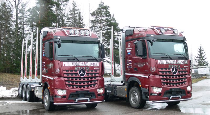 Vuoden 2015 puunkuormauksen mestaruuskiertueen lastausautona on Arocs 3663L 8×4 ohjaavalla takatelillä varustetuttuna. 76 tonnin painoon lastattuja koeajoyhdistelmiä on kaksi: